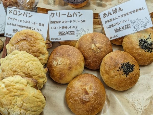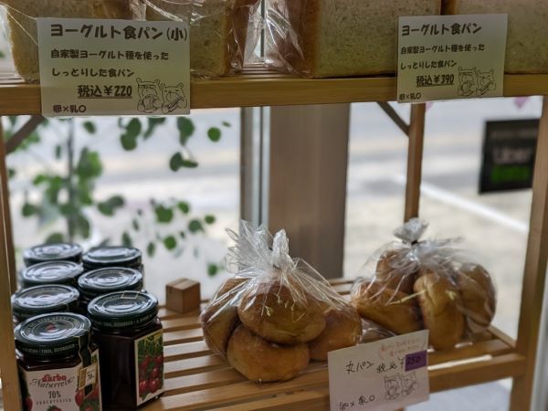 こちらは看板商品の、ヨーグルトと小麦粉でおこした発酵種を使用しているという「ヨーグルト食パン」です。オーナーさんが修行していた、福岡市南区高宮にあるシュトーレンで有名なお店の酵母と同じ製法だそうです。オープン1か月も経たないのに、既にファンも多く、目の前で丸パンが売り切れになりました・・・