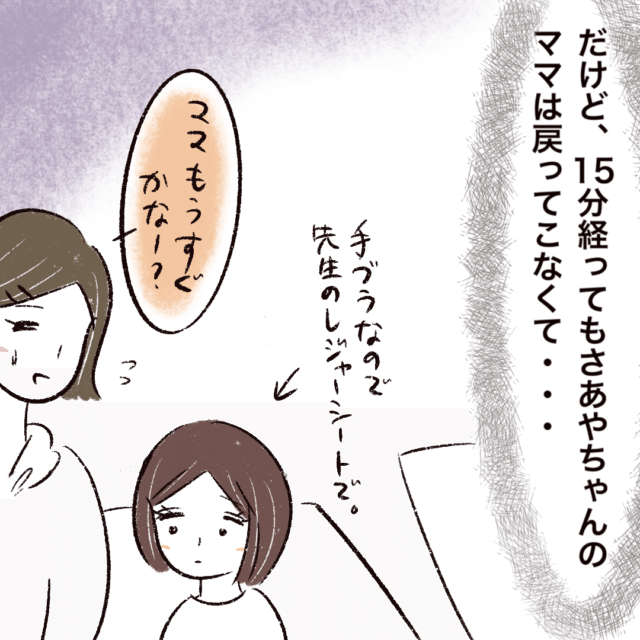 ところが15分経ってもさあやちゃんママは戻らず、