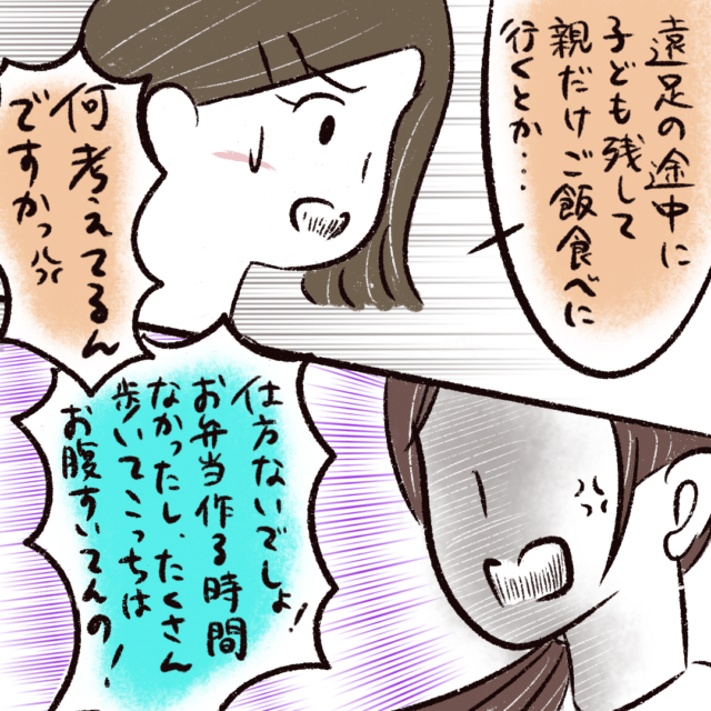 「遠足の途中で子ども残して親だけご飯食べに行くとか・・・何考えてるんですかっ!」