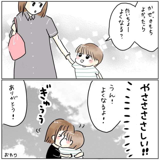 や、優しぃぃぃー!!体調不良の母に3歳息子が神対応|ホッターの子育て絵日記
