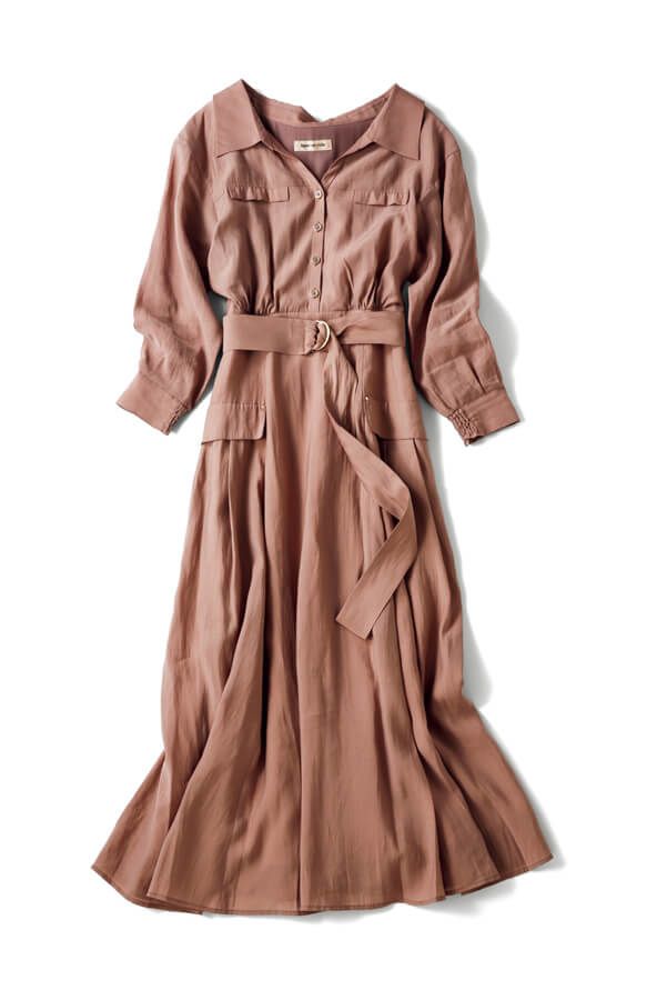 こっくりカラー×リュクスなツヤ感でシャツワンピをクラスアップ! コクのある深みピンクで大人の余裕を漂わせて。