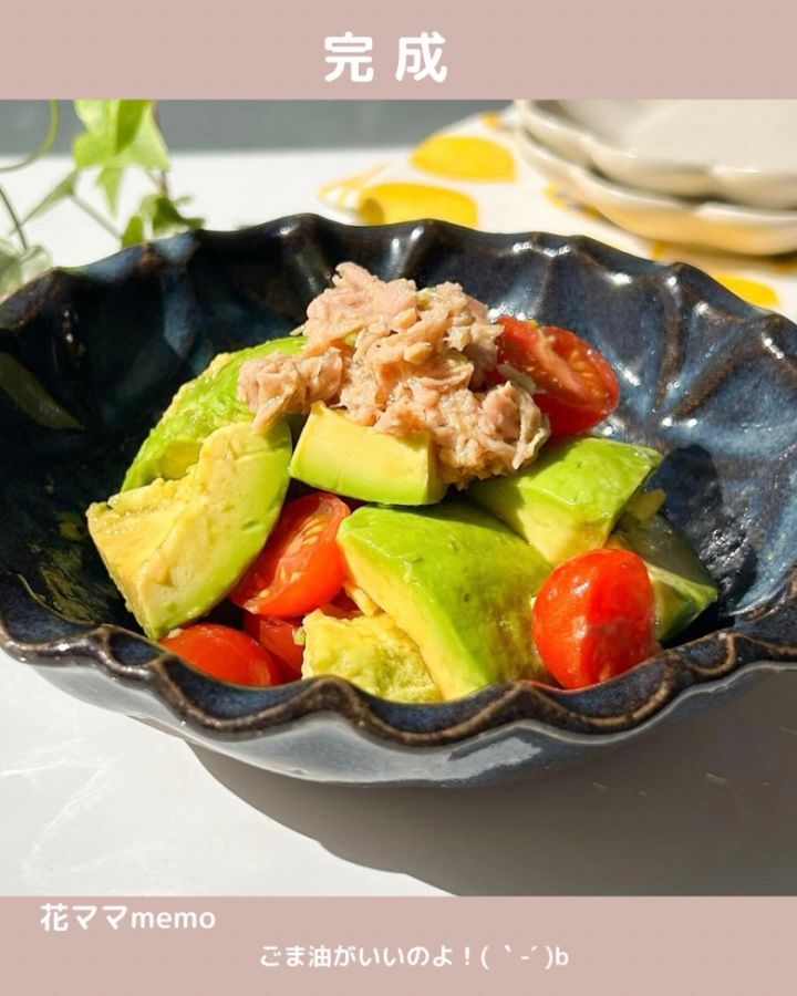 アボカドとトマトを切って、ツナとドレッシングで和えるだけの簡単な副菜はいかがでしょうか。アボカドを使用しているので、海鮮丼のなかでも特にサーモン丼に合うおかずですよ。