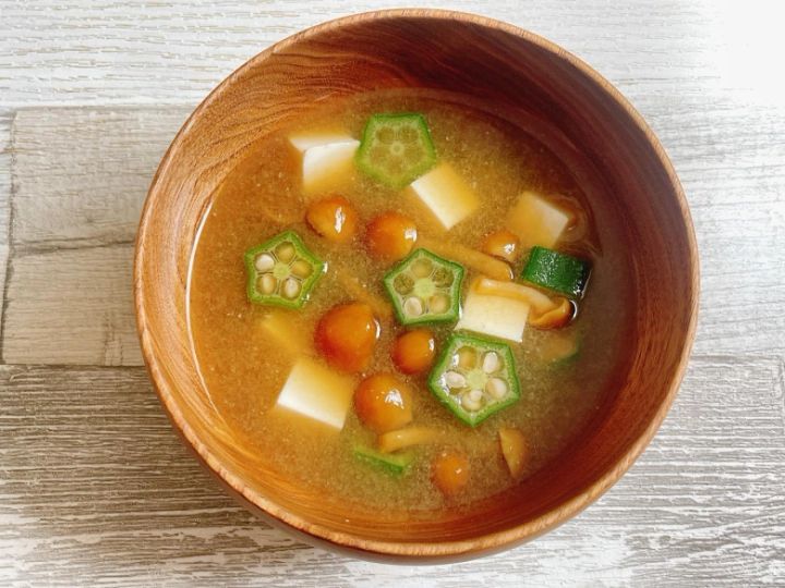 海鮮丼に合う味噌汁には、ねばねば食感が楽しめるなめことオクラの味噌汁はいかがでしょうか。海鮮丼もとろろの鉄火丼などにすれば、ねばねば食材で栄養たっぷり!胃や腸にやさしい献立ができあがります。