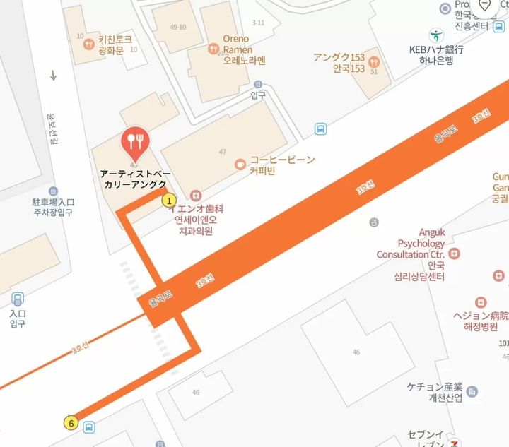 お店は3号線の安国(アングク)駅の1番出口を出てすぐのところにあります。