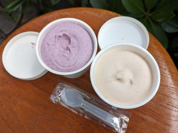 阿蘇のブルーベリーは、薄紫色がキレイな自然な甘さで、毎日食べたい熊本の素材を中心に使った自然派アイスクリーム!さくらミルクは、季節限定のアイスです。丁寧に育てられた農家さんからの農産物を主原料とし、旬の果実や野菜をたっぷりと使用した新鮮でフレッシュ感のあるアイスです。