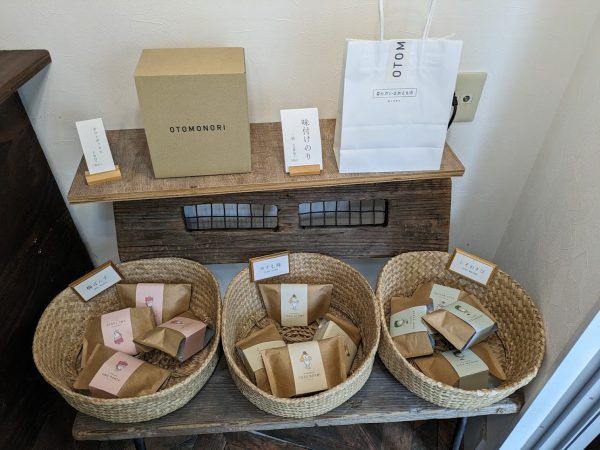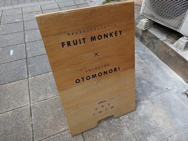この可愛らしいお店は、熊本生まれのナチュラルアイス「FRUIT MONKEY」と手作り味付け海苔「OTOMONORI」のお店のようです。看板まで素朴で可愛らしいですね。
