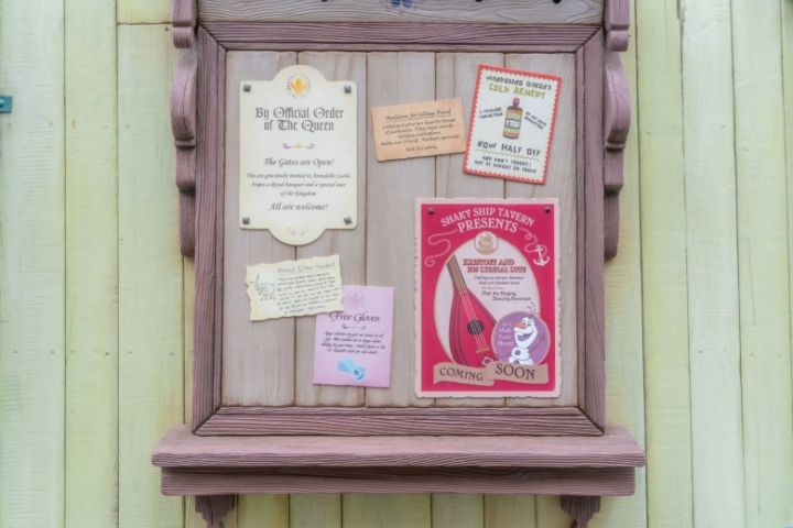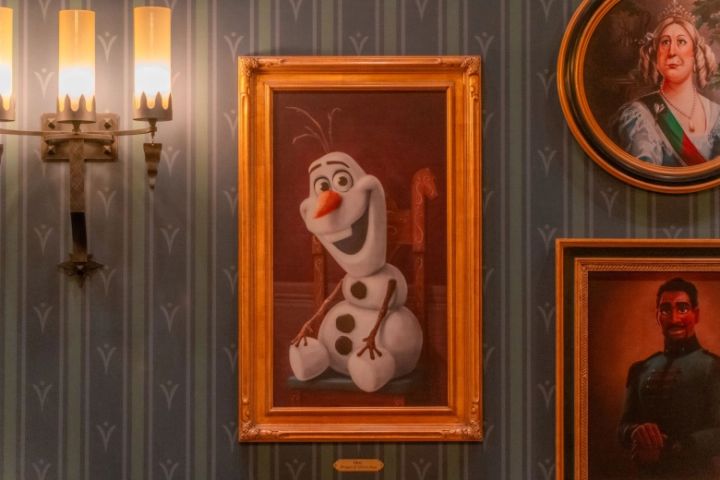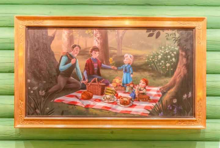 壁のあちこちには絵画が飾られていますが、よく見てみるとどれも見覚えのある絵ばかり!登場人物たちの絵や、アナがお城の中で歌うシーンで出てきた絵などがあるので、壁を眺めているだけでも楽しめます♡他にも、ディスプレイされている小物類なども細部までこだわって作られているので、ぜひじっくり見てみてくださいね!