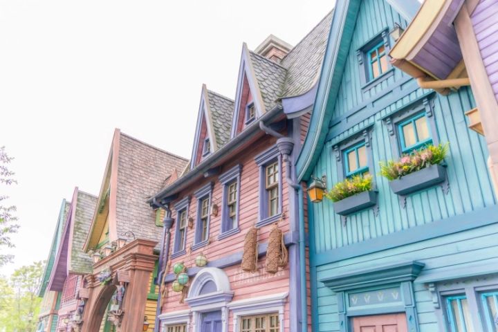 カラフルな建物がずらりと並んだ道は、歩いているだけで異国を旅しているような気分を満喫できちゃう♪どこを切り取っても絵になるスポットばかりなので、写真を撮る手が止まりませんでした(笑)。映画の世界そのままの景色が楽しめるのは、ファンにとってはたまらないですよね!