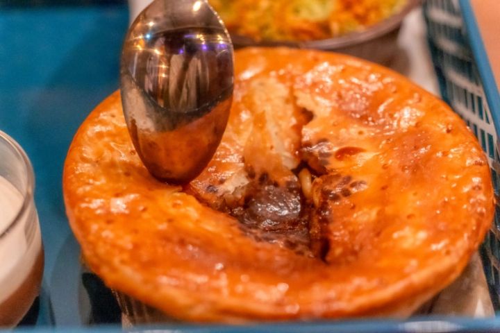パイを割ると中から濃厚なビーフシチューが!