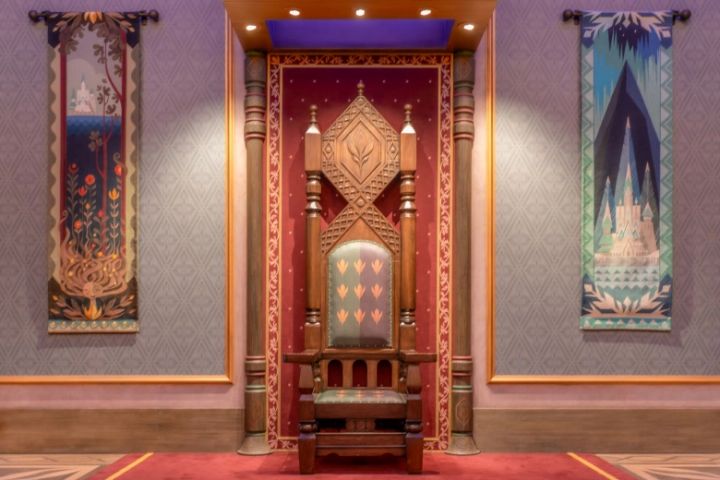 大広間の奥にある玉座は、実際に座ることができます。ぜひエルサやアナになりきって、素敵な記念写真を撮っちゃいましょう!