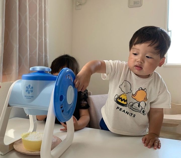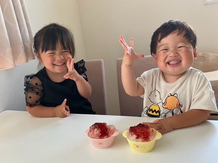 娘と息子も暑いのでおやつにアイス食べたい!かき氷食べたいと言ってきました。