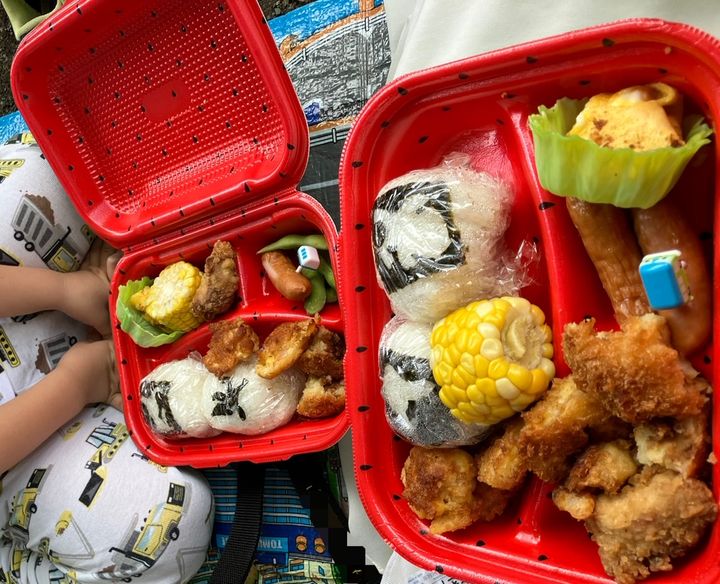 初めての運動会の午前中が終わり、待ちに待ったお弁当。