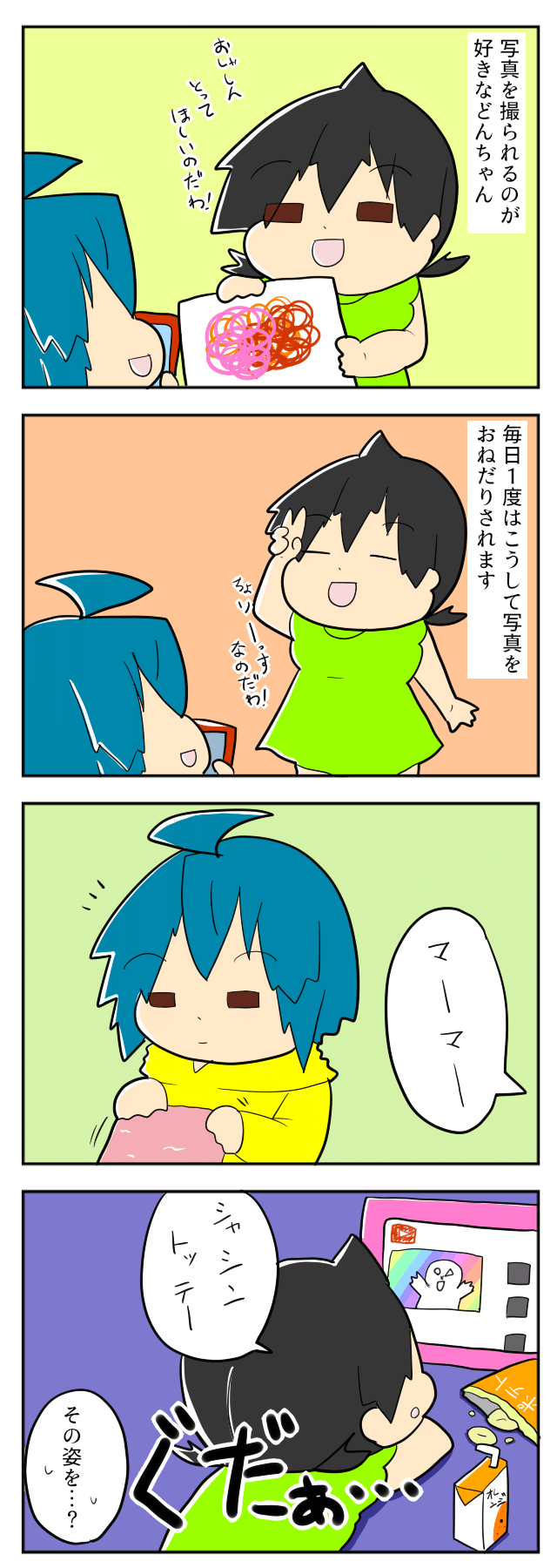 「写真撮って!」娘のリクエストに応えて毎日撮影。ゴロゴロ姿も・・大切な思い出だよね!|mochikoの育児マンガ