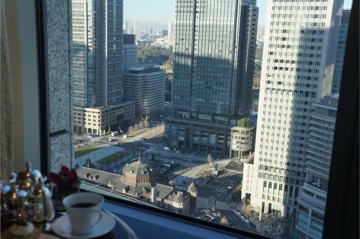 東京駅を見下ろす優雅な英国風ラウンジ