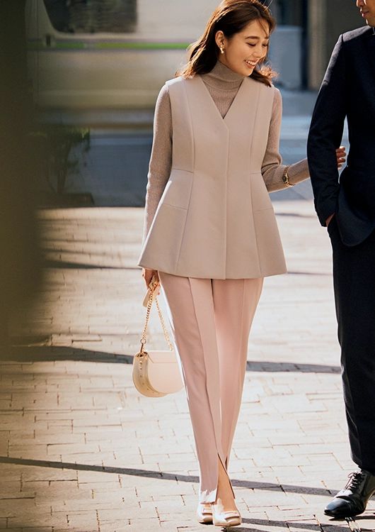 ブーム継続中のジレは「デキる感があるのになんか女っぽい」と、ずっと好評をキープ中。デートの日は、ウエスト位置が高めのペプラムデザインで、さりげなくスタイルアップを図って♪