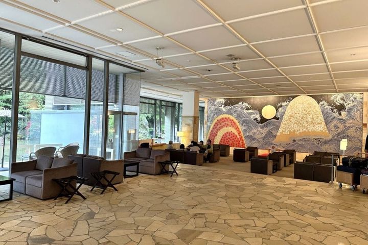この旅行で行きと帰りと二度立ち寄る予定の青森。まずは弘前から近い、名湯「大鰐温泉」にある「界 津軽」にお邪魔しました。館内に入るとまず目に入るのが、広々とした開放感のあるロビー。奥には津軽の風景が描かれた日本画の巨匠・加山又造さんによる壁画が存在感を放ち、青森での旅の始まりに期待が膨らみます。