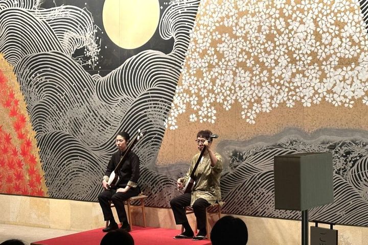 「界」では地域の文化を無料で楽しめる「ご当地楽」というスペシャルなサービスがあり、「界 津軽」では「津軽三味線」の演奏がありました。「叩き」といわれる打楽器的な奏法が特徴の津軽三味線。実際に聞いてみるととても力強く、多くの人が聞き入っていました。津軽の景色が描かれた迫力のある壁画の前で演奏される様子は、圧巻です!