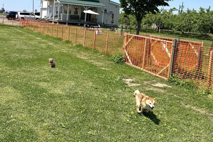 訪れたときにちょうどほかのワンコも来ていて、一緒に遊ぶことができました。旅行中はなかなかほかのワンコと遊ぶ機会がないので、まもるもとても嬉しそう! ドッグランの中にテーブルやイスもあり、まもるを遊ばせながらドリンクを飲むことができました。