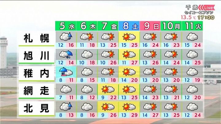 あす6月5日(水)の北海道の天気予報と、週間予報を、HBCウェザーセンターの星井さき気象予報士がお届けします。