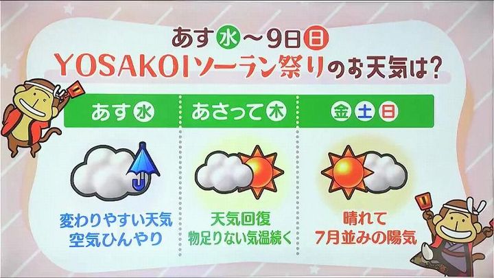 3. 【あす5日から!YOSAKOIソーラン祭りの天気は】北海道の週間天気予報 5日は急な変化に注意/気象予報士執筆