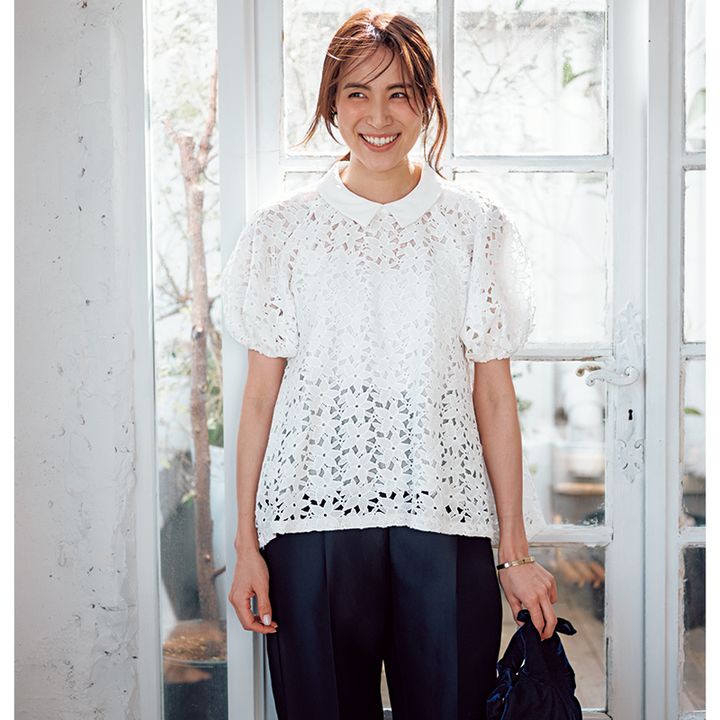 気持ちのいい季節が過ぎると一気に蒸し暑い梅雨、そして夏へと向かいます。そんな時季は、軽やかさを演出しつつも、一点主役主義で華やかに盛れるトップスが便利! 今回は、レーシーな素材に甘さも透け感も程よい、きちんと見えブラウスをご紹介します。