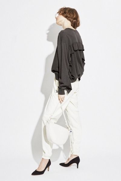 ロンTならではの長めのそでに個性を持たせて、華やぎを補う算段。気どらない素材だからこそ、多少大げさなシルエットでも力を抜いて装える。