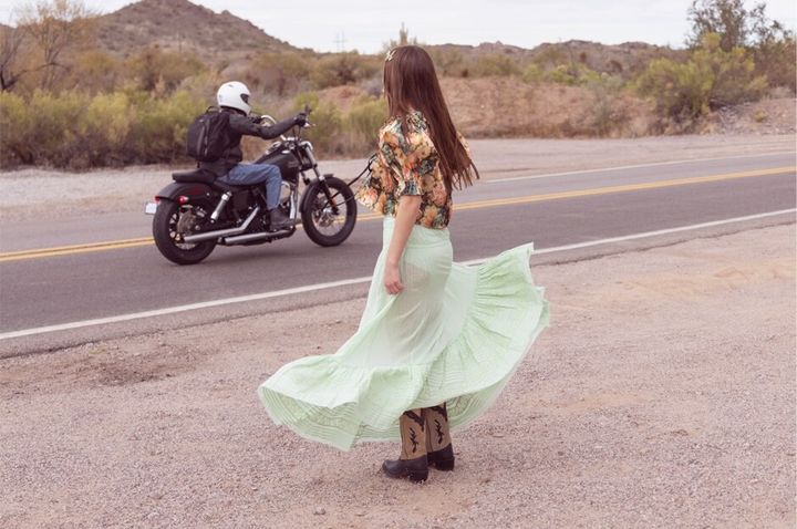Top Photo:top by SELKIE, skirt by FREE PEOPLE, boots by BOOTSTOCK, hair clips stylist's own