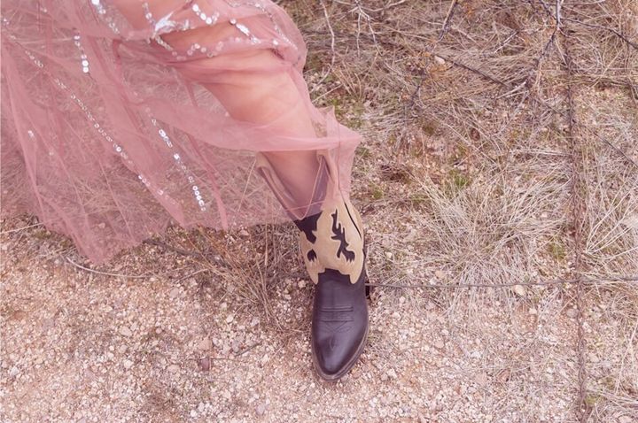 dress by FREE PEOPLE, boots by BOOTSTOCK