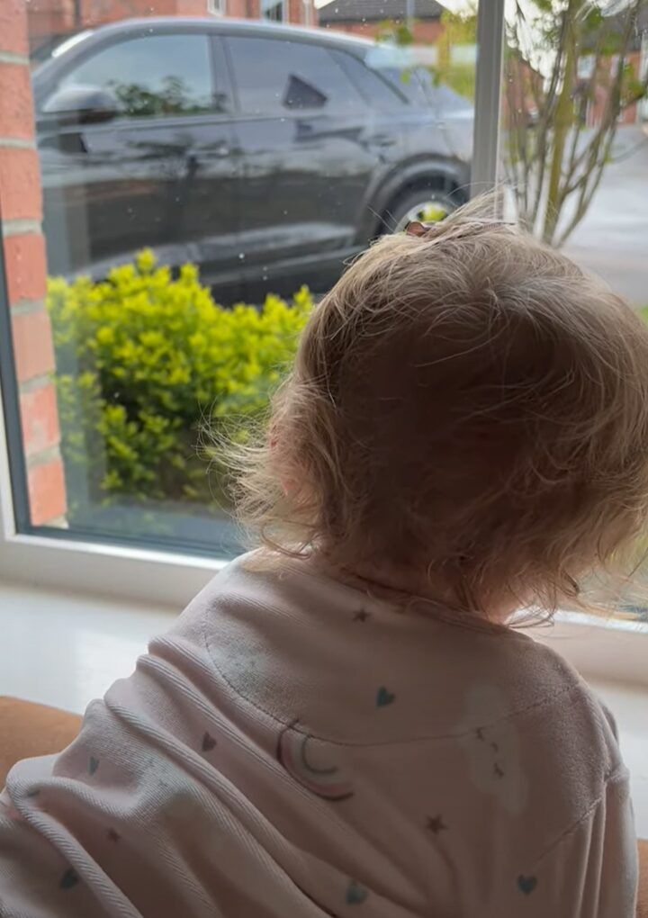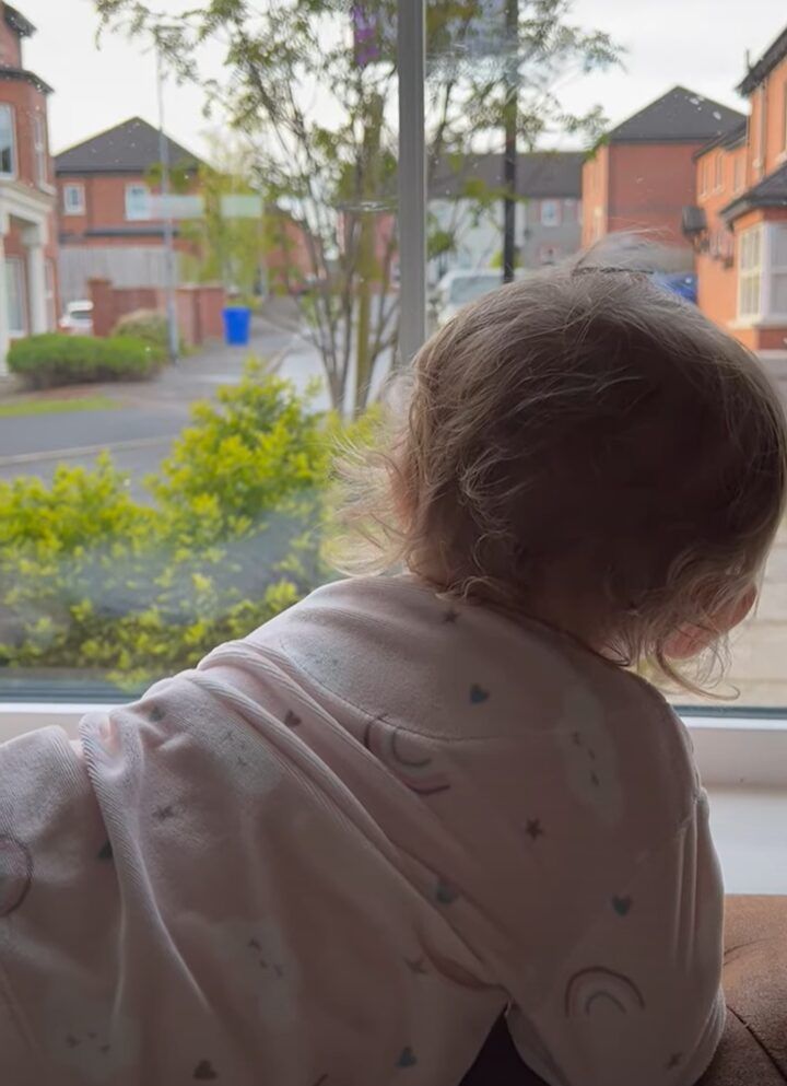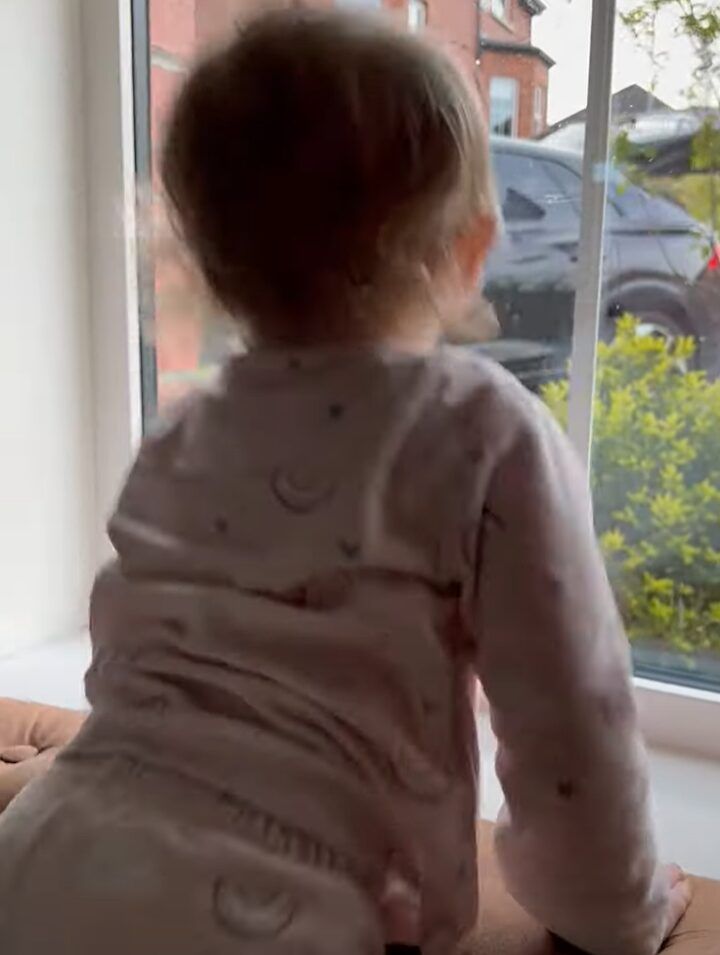 窓辺で外をじっと見つめる赤ちゃん。 どうやら、大好きなパパが帰宅してきたみたいです!!
