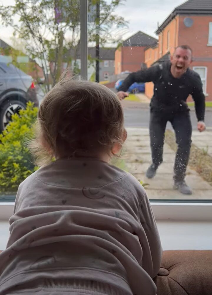 3. パパが帰ってきた!窓辺で赤ちゃんおおはしゃぎ!!