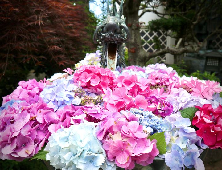 また、鎌倉1美しいと言われている手水舎(ちょうずしゃ)にもアジサイが飾られており、涼しげでとても美しいです