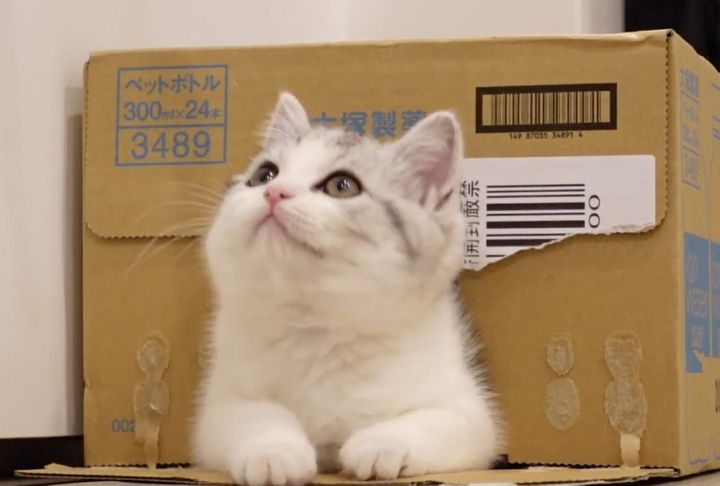 3. やっぱり箱が大好き〜♪ 中に入ってご満悦な子猫。