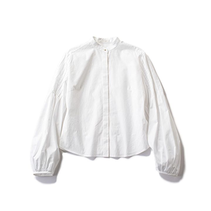 スタンドカラーとボリューム袖で凛とした印象も華やかさも両立。¥26,400(アルアバイル)