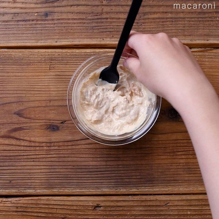 4: ボウルにツナ缶、マヨネーズ、しょうゆを入れてよく混ぜ合わせます。
