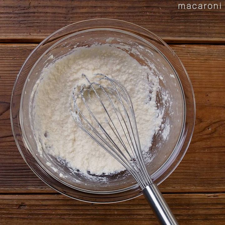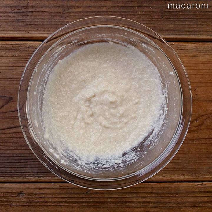 3: 米粉、ベーキングパウダーをふるい入れ、さらに混ぜます。