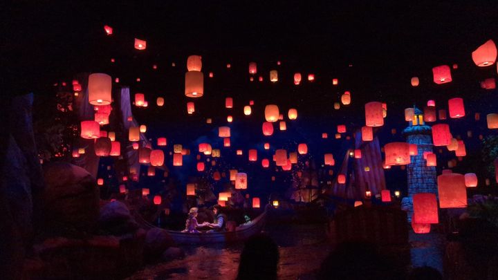 最後は「ラプンツェルの森」エリアにある「ラプンツェルのランタンフェスティバル」。アトラクションに乗らなくても、冒頭写真のように塔にいるラプンツェルを見ることができます。とてもリアルで歌っている表情もかわいい…!