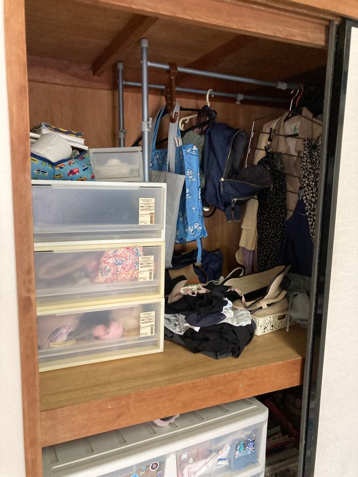 現在はこのように、押入れにボンッと投げ入れてもよいスペースがあります。ここに自然に置くようになりました。