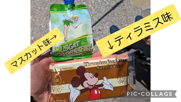 夏ですからね、こちらもいっちゃいました♪ティンカーベルのマスカット味は3歳次男もこぼさず食べられて良かったです。さわやかでオススメです。ミッキーのティラミスアイスはサンドになっているので、長男が気に入っていました♪