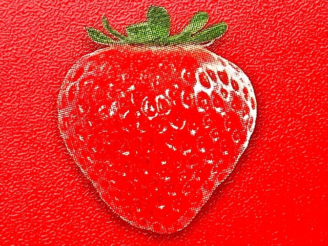表にはたくさんのイチゴがや、ハート形のグミが描かれています。