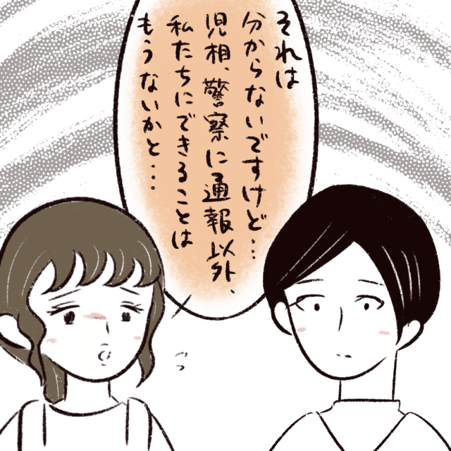 「それは分からないですけど・・・児相、警察に通報以外、私たちにできることはもうないかと・・・」