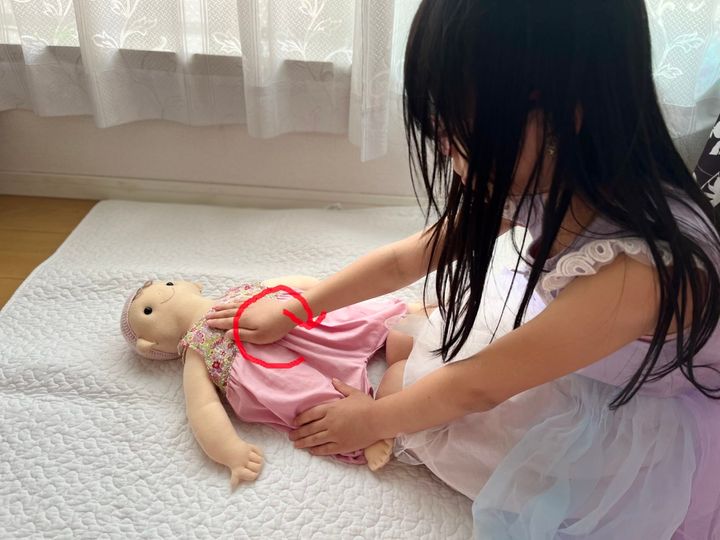 片方の手をおなかの上に置き、やさしく圧をかけずに時計回りにくるくると円を描くようにマッサージしていきます。