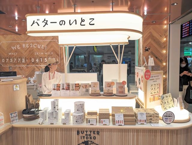 改札外で購入できるのは「バターのいとこ」のみですが、改札内はそれぞれのブランドが勢ぞろいしています。