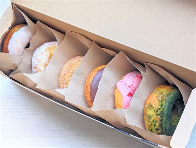 バリエーションが豊富で、並べてみるととても可愛い! ふわふわ生地が特徴の焼きドーナツとのこと。早速いただいていきましょう!
