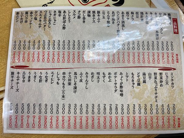 品数多いです。この他、カウンターのホワイトボードにオススメ料理らしきものが書かれていました。