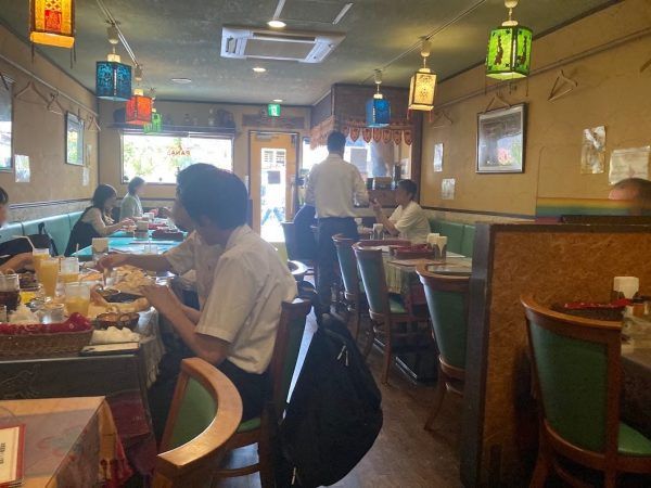 私の隣の席には学生服を着た学生さんがお友達と楽しくお食事をしていましたが、みんなランチを楽しんでいました。(ナン、ライスのお代わりが1回無料でそれを頼んでいました〜。さすが若者よく食べてましたよ!)
