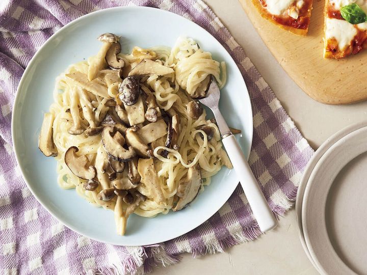 パスタ麺を「フォー」で代用してヘルシーに!きのこのクリームパスタのレシピ