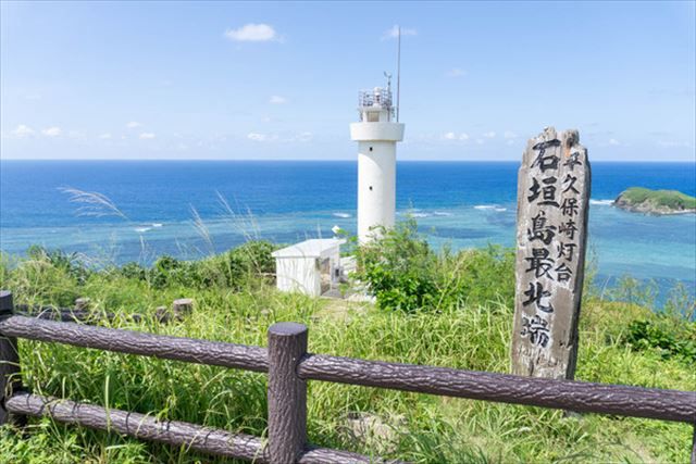 「平久保崎灯台」は石垣島の最北端そびえ立つ灯台。灯台のふもとから見える広い青い海は、ほかの絶景スポットとはまた違った印象を与えてくれるはず。ちなみにここは全国でも数少ない「恋する灯台」と呼ばれるロマンスの聖地。カップルにとっても人気のスポットです。
