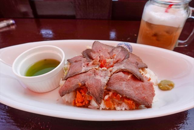 中でも数量限定のローストビーフ丼はあれば必ず注文したい一品。しっとりやわらかいお肉と甘辛なソースがおいしすぎる……! テラス席からの景色も最高です♪