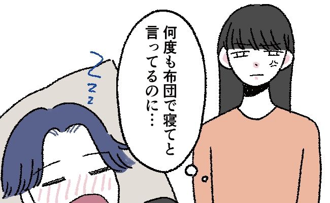 結婚して5年目のころ。「テレビを消して!」「布団で寝て!」と言い続けているのに、毎晩のようにお酒を飲みながらソファーで寝てしまう夫に、私は徐々に苛立ち始めました。