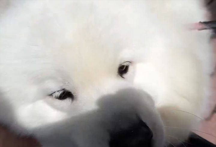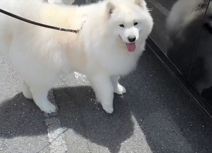 ご紹介するのは、サモエドのサニー(@samoyedsunny)がXに投稿された動画です。 サモエドの『サニー』くんのシャンプーをお願いしていたので、お迎えに行った時の事です。